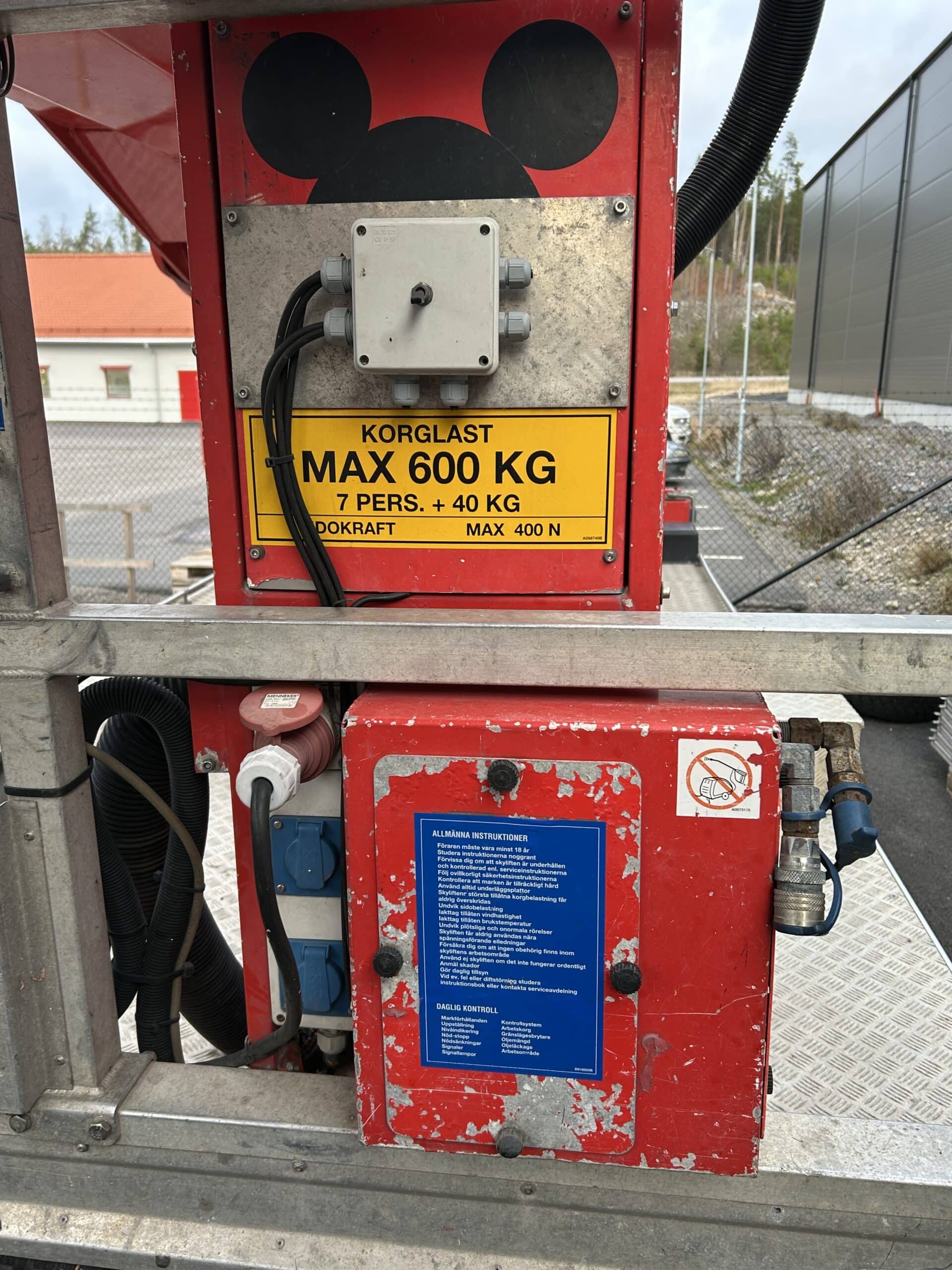 Möjligheter är ganska vida för arbete, då vi har eluttag enfas/trefas/16A i korgen.